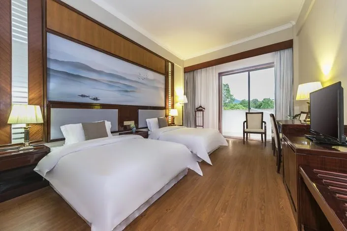 客房以新中式风格装修,融入武夷山自然文化、大红袍茶文化等元素,拥有多种房型133间:115间标间、9间亲子房、9间大床房。每间每天住宿费用为220元(含双早)。